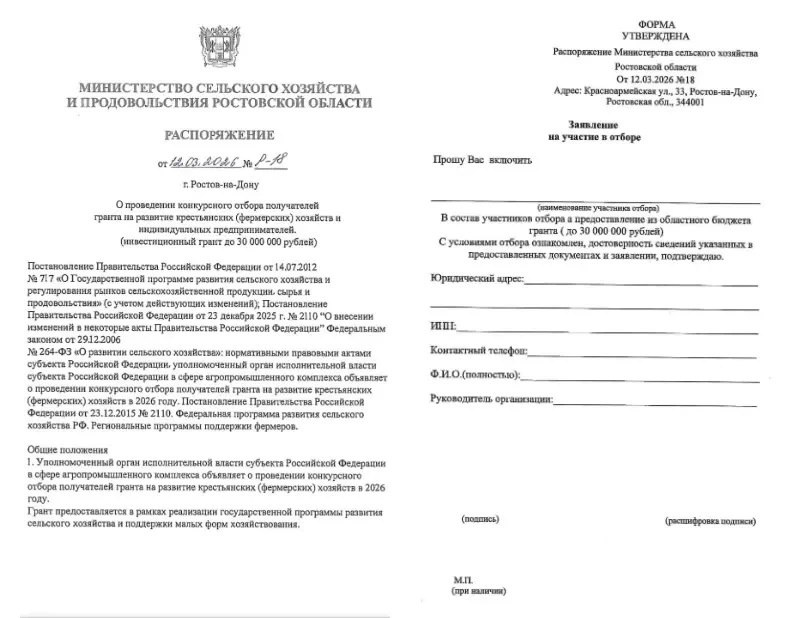 Производители агропродукции в Ростовской области могут стать жертвами дистанционного мошенничества. Об угрозе написала пресс-служба регионального министерства сельского хозяйства. «Неизвестные звонят сельским предпринимателям, представляясь сотрудниками нашего ведомства или Центра компетенций, — сказано в материале. — Под видом господдержки просят перейти по ссылке и заполнить анкету». Источник опубликовал образец фейкового распоряжения и прилагаемую к нему анкету. В подделке аграриям обещают гранты до 30 млн руб. Как во всех аналогичных случаях, задача преступников — заставить жертву предоставить персональные данные или перейти по ссылке. В донском минсельхозе заявили, что не существует распоряжения от 12.03.2026 № Р‑18 о грантах до 30 млн руб. «Официальные отборы проводятся только на портале promote.budget.gov.ru, — подчеркнули в ведомстве. — Мы не используем почты: mcx.don-agro@list.ru, minselhoz@donland.ru, info@mcx73.ru». Министерство приводит настоящие контакты. Сайт: mcx.donland.ru. Почта: kanc@don-agro.ru. Приемная: 8 (863) 232-05-74. Канцелярия: 8 (863) 234-60-00. Центр компетенций: ck-rostov.ru, ck-msp@yandex.ru, специалисты: 8 (863) 232-75-73.